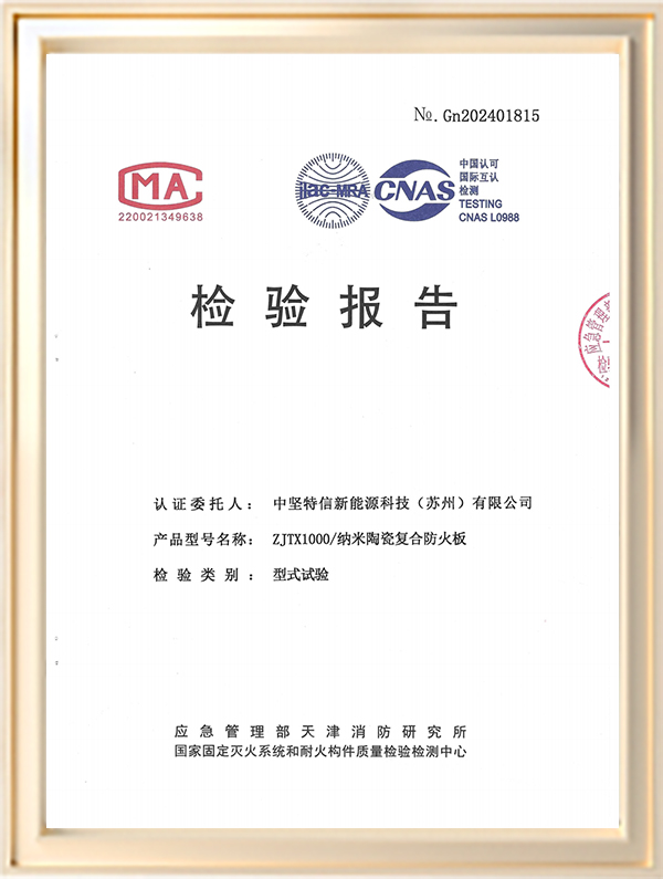 中堅特信新能源科技(蘇州)有限公司是由蘇州科技大學材料學院的技術骨干和天鼎源創公司以及中堅新能源合伙企業發起成立的,致力于新能源汽車和儲能電站的阻燃防護,以技術進步最大程度的保證生命和財產安全。公司聯合蘇州科技大學材料學院唐院士團隊和天鼎源創公司重大創新團隊進行新材料的開發,創造出耐1000℃及以上的耐高溫隔熱阻燃非金屬柔性材料,2A級生態滅火劑,A1級納米陶瓷復合隔熱板以及高燃值火災防控隔斷,在新能源火災防護領域用途廣闊。